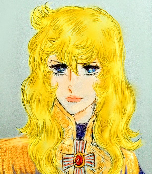 過去絵だけど、めっちゃオスカル様のブロンドが映えますね😆 #絵を彩度100にすると超派手