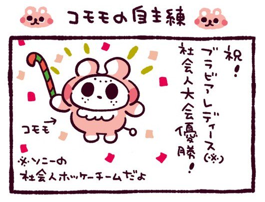 「モモのお届け日記」第75話「コモモの自主練」。ソニーHC BRAVIA Ladiesさん、全日本社会人ホッケー選手権大会の優勝おめでとうございます!