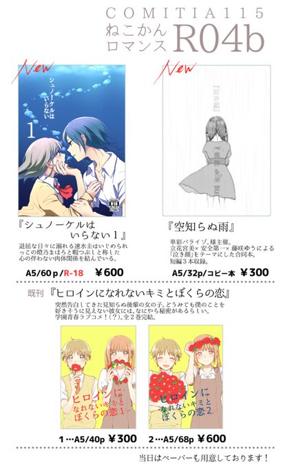 新刊は薄暗い創作男女漫画と「泣き顔」がテーマの合同本になります。https://t.co/YAuWazQI0n