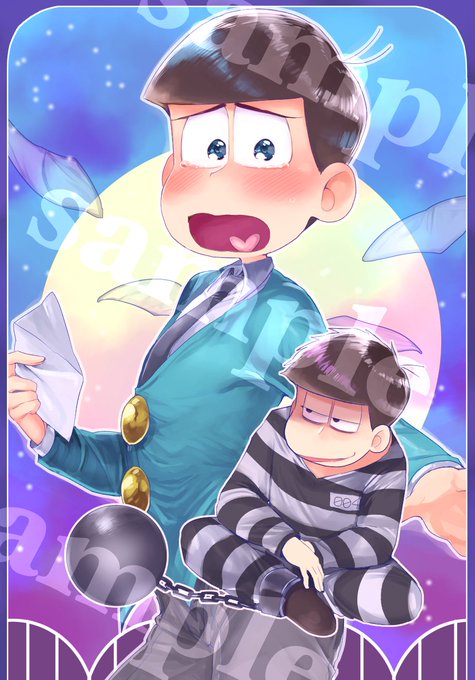松野ー松囚人パロディアンソロジー【受刑者番号004】のサンプルです。次男と囚人の四男が文通をするほんのり薄暗い雰囲気のまんがを8Pとノベルティのクリアファイルのイラストも描かせていただきました!詳しくこちらへ@ONE_SHUJIN