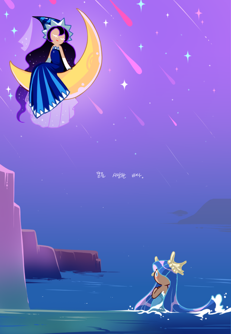 쿠키런 업데이트ㅠ 바다요정 쿠키 ㅠㅠㅠㅠㅠ너무 예쁜거 아닌가여?..하.... 그리고..완전.. 달빛술사쿠키랑..허억 진짜 둘이..진짜..여신커플이 될꺼같은데.. 하.. 쵝오.. 그려봤습니다. #쿠키런