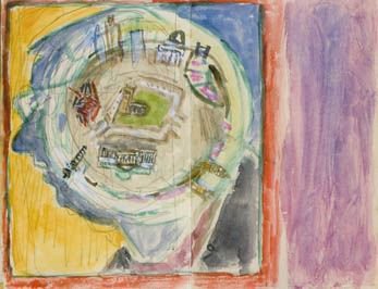 Transition Two’s always exhibit two artists in dialogue, collaboration or opposition. Back in September Luci Eyers and Timothy Hyman came together in the gallery to collaborate on a wall drawing as part of ‘Overlapping Circuits / Divided Selves.’