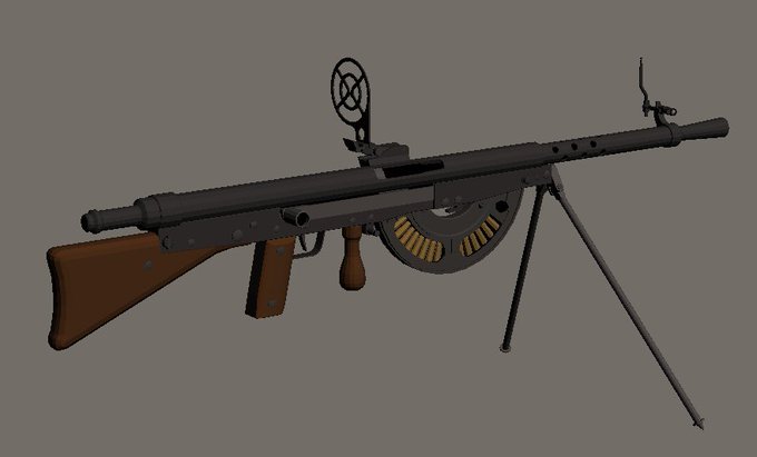 M1915 CSRG(ショーシャ軽機関銃)。第三共和政のフランスで開発されたオートマチック・ライフル。当時の同種の自動火器としては軽量で、先進的なものだった為、制式名称にも機関銃ではなく自動小銃と表現されている。反動が強い、壊れやすい、装弾不良等で前線での評価は最悪だった。#HMG_Mod