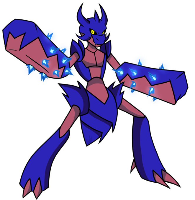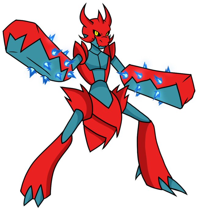 Ancient texts described Scizor as rampaging Oni. One Scizor was so strong it could punch holes through mountains. The only thing bigger than their fists is their appetite.