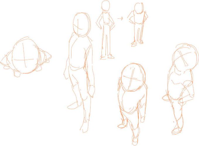@yamashirosyu 問題ないと思いますが、気になるなら多分下(カメラから遠い)ところほど短く描くってのが難しいからかもしれないです。俯瞰だとふくらはぎより太股の方が長くなります的な?