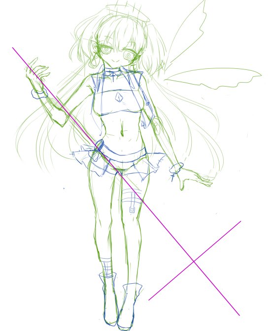 一番最初のラフ→完成。最初のラフ書いたらその上に下書き用のラフを書いてから下書きしてそして線画を書くという効率の悪い作業をしている…