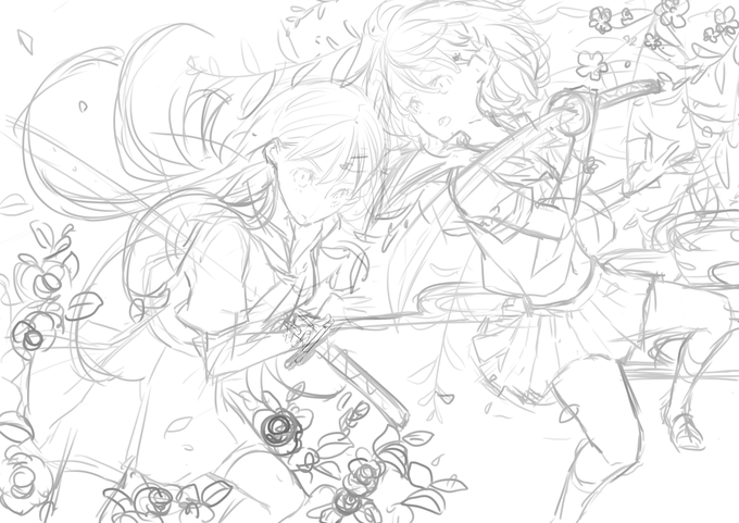 #皆さんラフと塗った後を見せてください 下書きレイヤー残ってたものをば