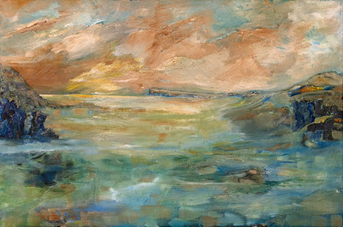 Vivian Tozer: 'Golden Cove'; Oil on Canvas; £400. Prints from £25/Cards £3.95. Visit us at Gallery 455 to buy original art! https://t.co/asbzVqPsEM