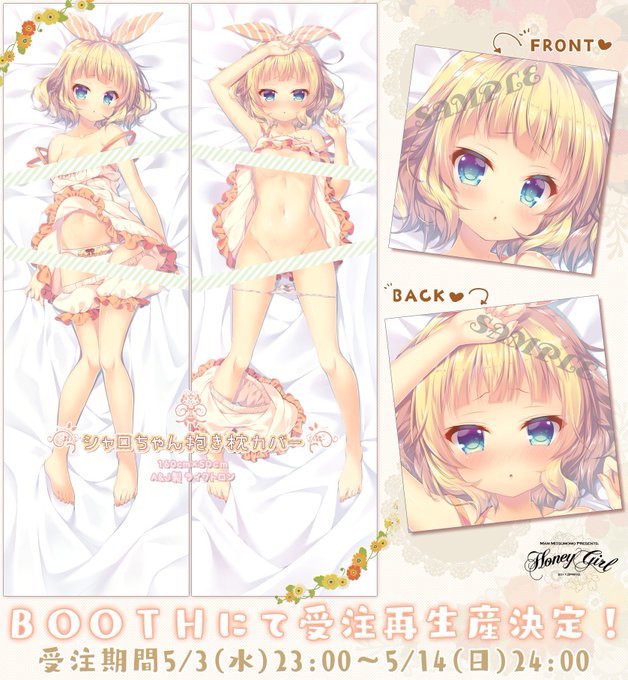 コミ1新作のシャロちゃん抱き枕カバーをBOOTHさんにて受注受付中です。受付期間は5/14(日)24時までです。どうぞよろしくお願い致します!蜂蜜少女BOOTH→https://t.co/4C9lJYmsfA