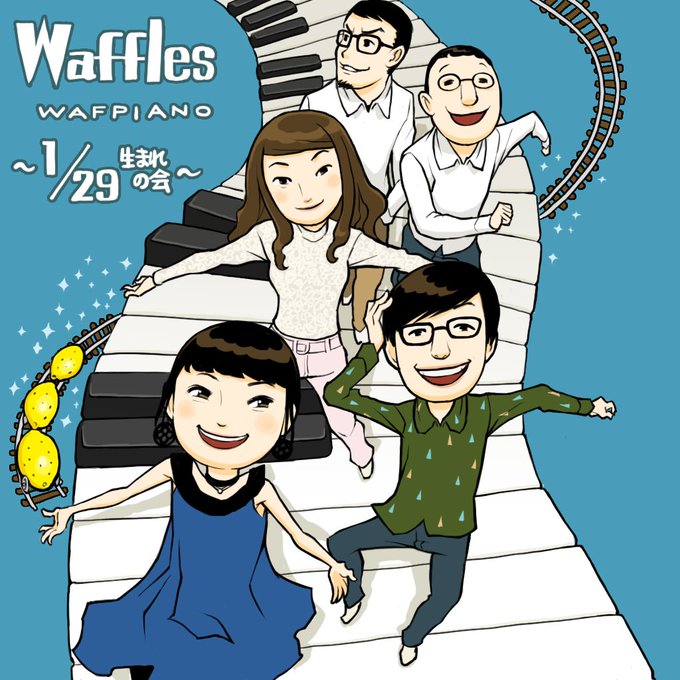 @wafflesjp 今回、今までより記憶が曖昧で服とか違うかもですが描いてみました!けふこさん、お誕生日おめでとうございます!waffles15thおめでとうございます!