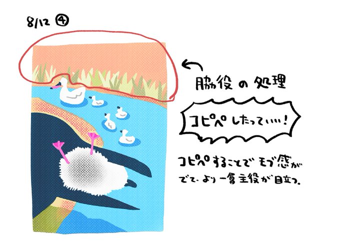 脇役部分をどう描くかいつも迷うので、「コピペも有り」とアドバイスを頂いて目から鱗でした🐟