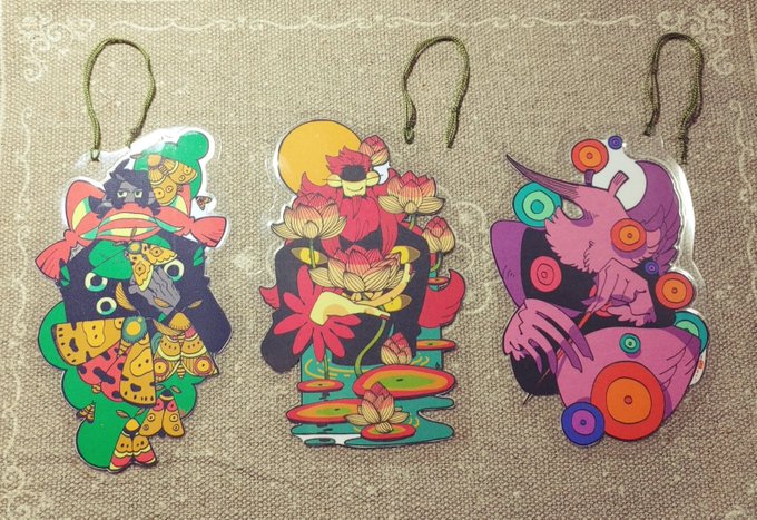 【三帝のBookmark🔖】 オリキャラで栞を作ってみたくて、こうしてこうしました✂ 強度を考えて栞の紐穴にハトメを付けようかとも思いましたが、本に挟んだ時にページが痛んでしまうと思い、ハトメはやめました。