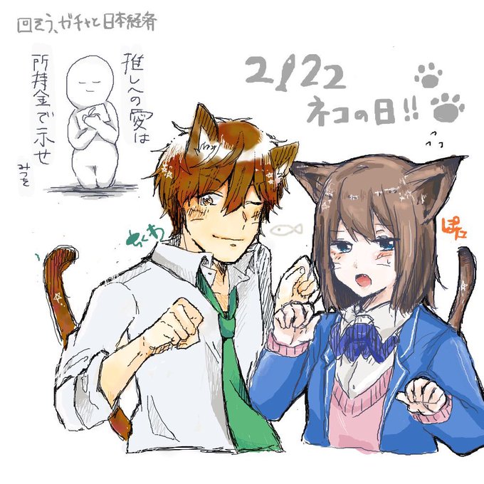 かぼちゃ(@0hayo_zzz )とえちゃ〜〜〜〜〜!!!!!!!!猫の日ちああんとお互いのリクエストでおじいちゃんとうっちゅ〜😘