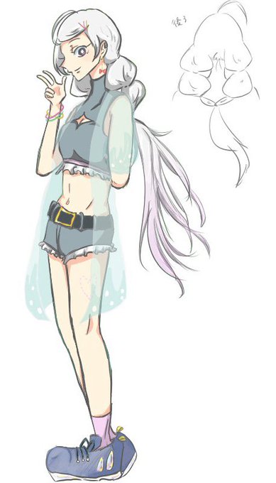 要素:銀髪or白髪、ロングヘアー、ピアス、ネコ目、短パン、元気