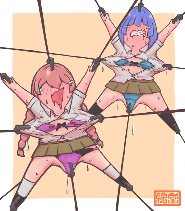 我らが兄貴分サブマリング先生に捧ぐお誕生日お祝いに、彼の小説作品に登場するキャラクターのダイヤちゃんとシズクちゃんを描かせていただきました! #サブマリング兄貴誕生祭 #ソォルブリィズ #平面化 #状態変化