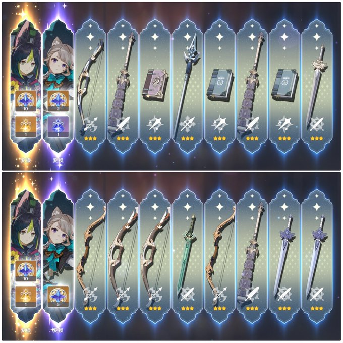 ようこそアルレッキーノさん!!!!!!!!!!!! 2本来ちゃったぜ赤月のシルエット!!! そして完凸しちゃったよティナリ!!!!!