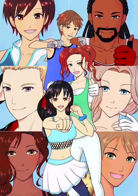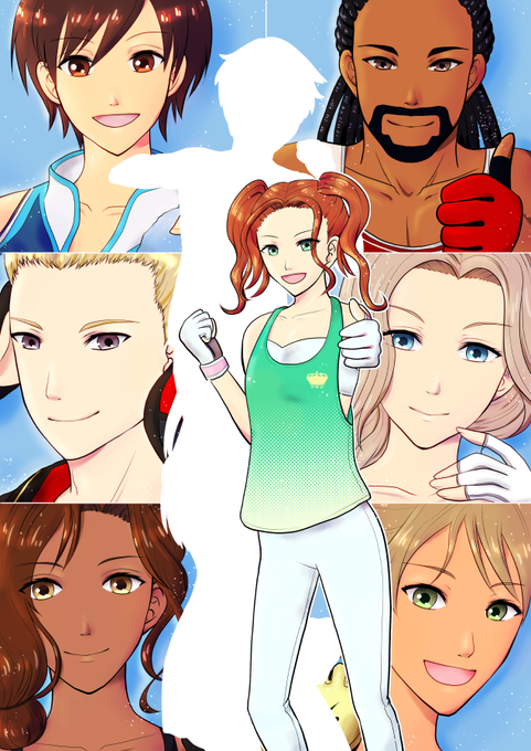 イラコン運営に確認してSNS掲載OKとのことですので、Twitterにもあげておきます!フィットボクシング2のインストラクター集合絵です!集合絵はいいぞ