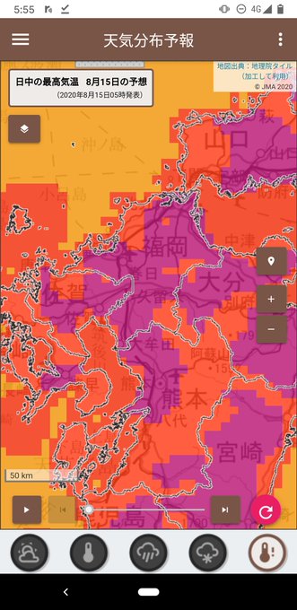 最高気温は久留米市37℃、福岡市・北九州市・飯塚市36℃🥵🥵🥵