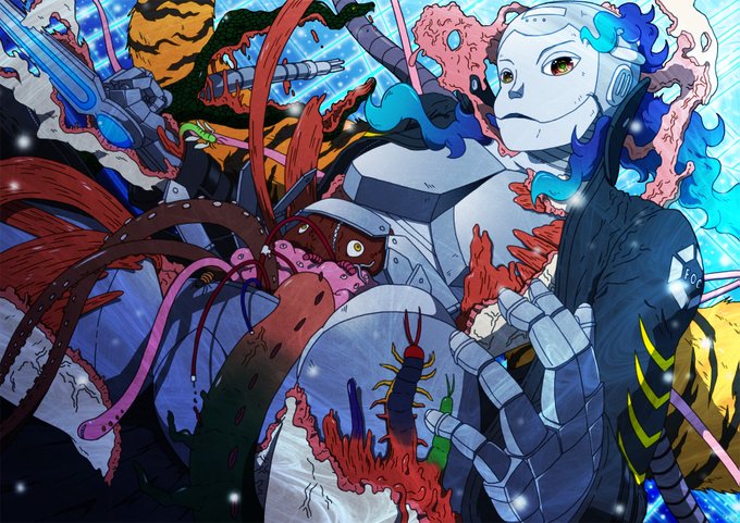 怪異研究機関「FOC」の総所長であるサイボーグ妖怪「夜鳥 観世(やどり みよ)」をはじめ、パワードスーツに変化する式神を纏って戦う陰陽師やアンドロイドなどのキャラクターを描いています。