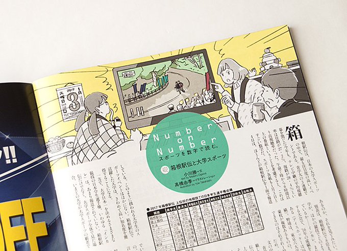発売中の『Number』919号にて、巻末のスポーツの記録にまつわる小川勝さんによる連載コラム「Number on Number」第402回の挿絵を担当させていただきました。テーマは「箱根駅伝と大学スポーツ」です。