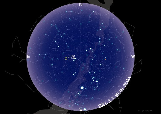かに座の足の先のι星も二重星で、小型の望遠鏡でも黄色っぽい星と青い星に分離することができます。色違いの星が並ぶ様子から「春のアルビレオ」と呼ばれることもあります。