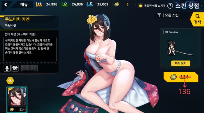 쿠노이치 카엔 <두송이 꽃>스킨의 가격 상승.