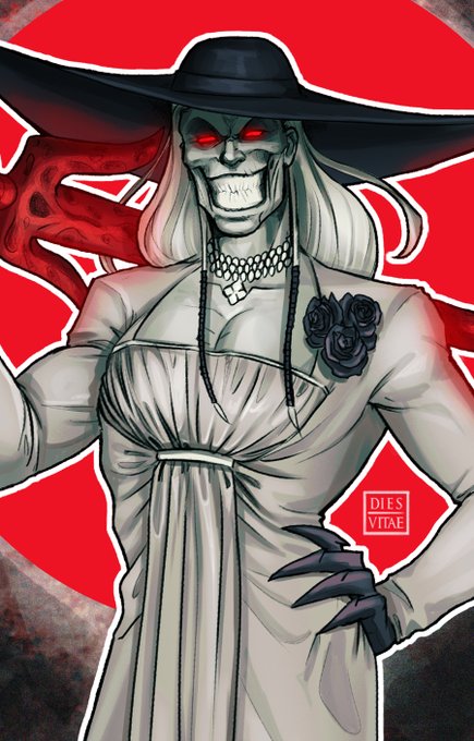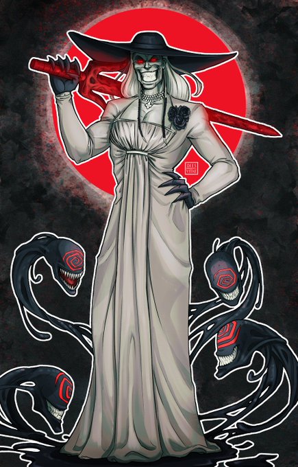 Knull in Lady Dimitrescu's clothes because why not. Somehow he looks good.