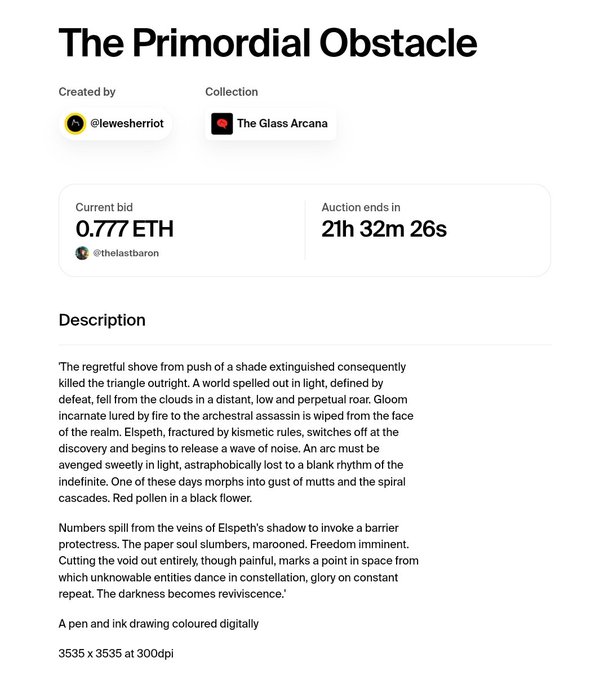 PS: in disbelief cos the auction has been started on The Primordial Obstacle! 😵💜