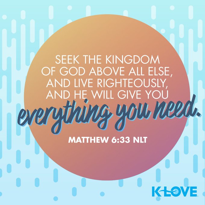Seek the Kingdom of God above all else, and live righteously, and he will give you everything you need. –Matthew 6:33 NLT #VerseOfTheDay #Scripture