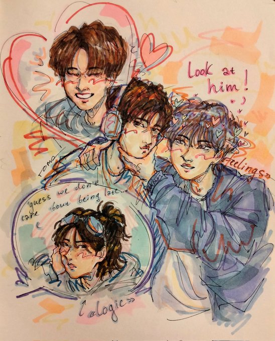 have some old skz fanart :)) havent drawn them in months bc i've been busy with school and im facing burnout 😵💫 #staytistontwitter