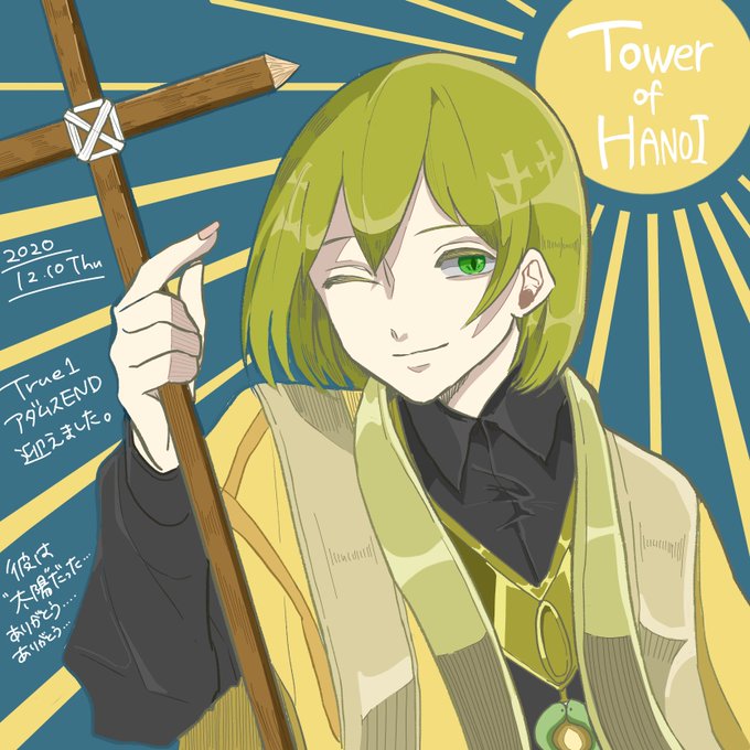 True1、アダムスend迎えたのでお絵描き アダムスの圧倒的太陽属性に何度も救われた😭 良いゲームでした。。。。。 #TOWER_of_HANOI