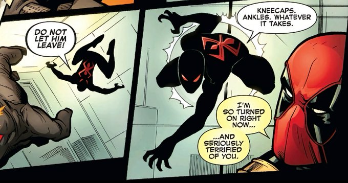 PETER THO, is completely understandably furious after getting murdered😂 turning up in a sexy scary stealth-suit (and kinda acting like a.. scorned bf)