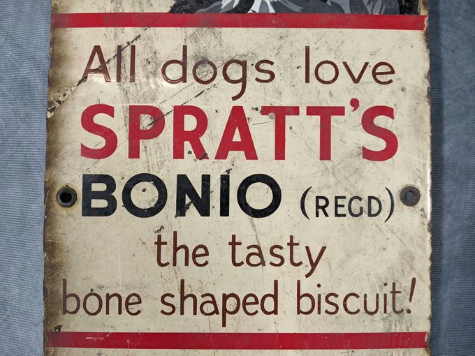 Attention all collectors and dog lovers! 🐾🐶 Don't miss your chance to bid on our latest find at the upcoming antique auction - an advertising enamel sign for Spratt's Bonio dog biscuits a must-have for any vintage advertising enthusiast! 🐾🍪