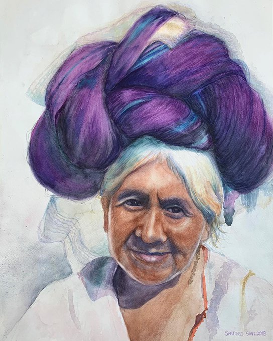 Mujer nahua de Cuetzalan con maxtahual. Esta una de mis pocas aproximaciones a acuarela realista que realicé en 2018; fue a partir de una foto de José Pablo Fernández Cueto. Quedé muy contento con el resultado.