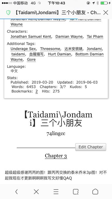 最近的更新!都是因为丙丙(@0hb00 )的图更的!感谢丙丙的色米图造福大众啊prprpr(我手机相册存了好多哈哈哈哈哈) p1是taidamijondami的3p!跟丙丙的交换!p3是jondami!丙丙开的超爽点图! 然后我放去ao3了(那边贴图稳到不行大家可以试试) 希望丙丙早日萌个热圈(😂)