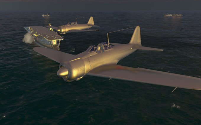 Working hard to get the shadows & #3D lighting right for a series of videos & screens on #screenshotsaturday. Experimenting with Akagi's fighter unit flying combat air patrol over its home, chillin' against the Sun😎