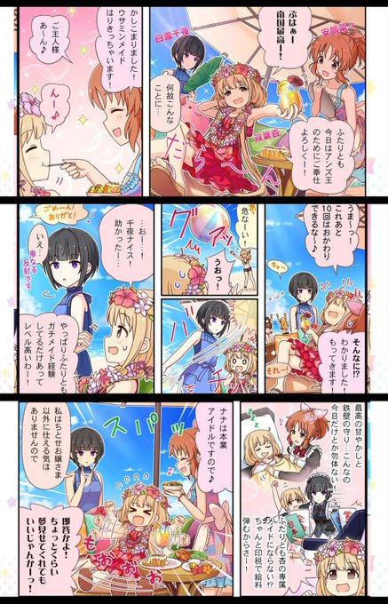 #双葉杏 #白雪千夜 #安部菜々 この二人のメイドが揃うと鉄壁だな…(爆 #城ヶ崎美嘉 #久川颯 #久川凪 #黒埼ちとせ #乙倉悠貴 #城ヶ崎莉嘉 新しい妹!?に、慌てる莉嘉…(爆 #速水奏 #新田美波 #高垣楓 ユニット組から迫られ、年相応にはしゃぐ奏さん…偶には良いじゃない♪ #デレステ #デレマス