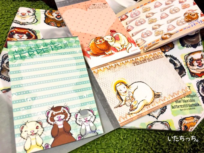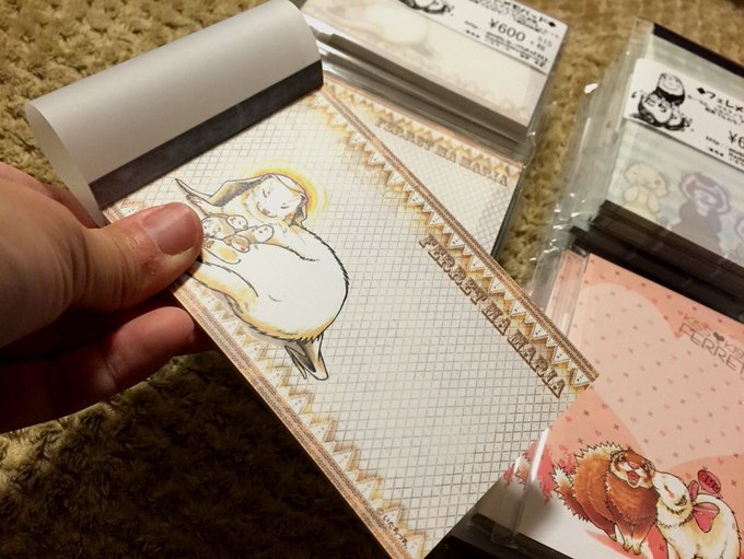 『フェレメモパッド』どーんと全種類ご用意!笑顔満開「ククク♪フェレット柄」、ラブラブ「Kiss柄」、優しい雰囲気の「フェレママリアさま柄」うんちょの妖精「ふぇれうん柄」ヽ(〃∀〃)ノ