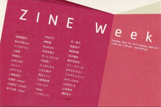 在廊します。参加作家も揃うかと。私のzineはワンコインですよ。