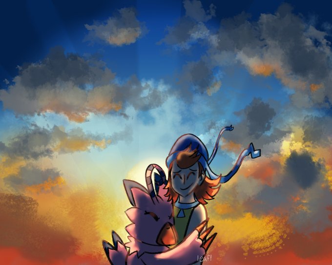hi i'm leaf and everything i like tends to involve befriending monsters or is a visual novel here's the most recent things i've drawn i think #BOOSTALONGMINI