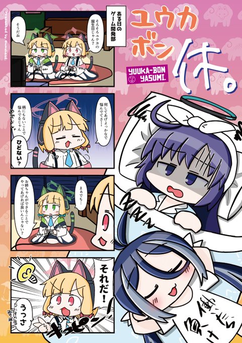 【新刊出来ました!】 3/16のせんアカ13のおしながきと表紙ですー! いつもと変わらずユウカ中心4コマ本!「ユウカボン・休」 雰囲気変わらずいつもどおりのギャグ漫画となっております!B5・20P・500円で頒布! よろしくおねがいします!!!!!サンプルやゲスト情報はリプで!