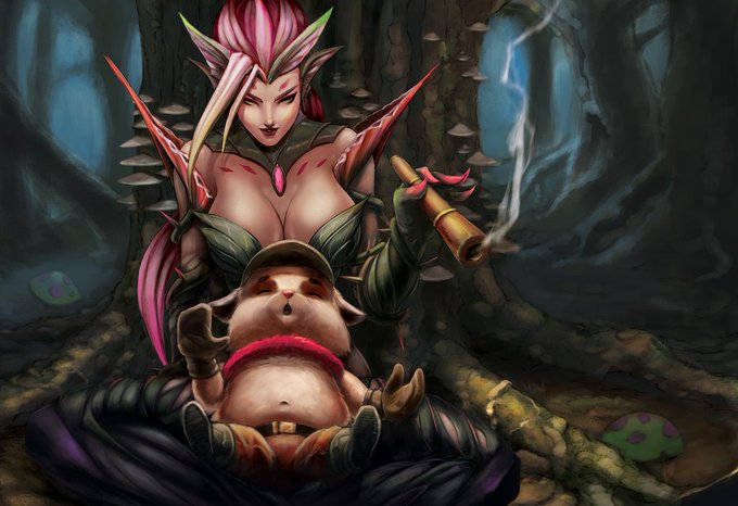 A request I fulfilled: Cassiopeia about to pounce on Teemo, but her tail gives her… https://t.co/fY8MiEi7aV