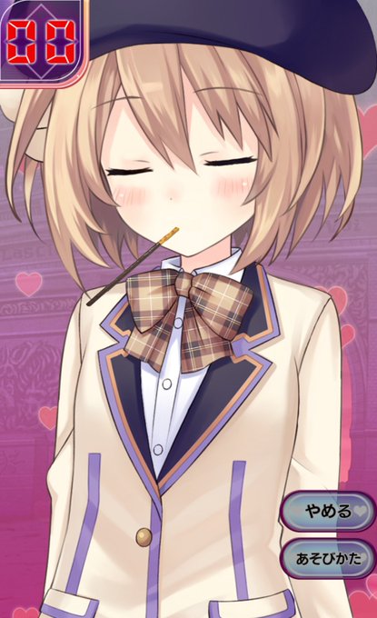 セガリンがブランちゃんとポッキーゲームをすると、相手は真顔で、とても緊張しながら 目を閉じて、相手からキスをしてくれるのを待っています。