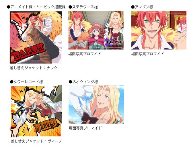 ナレク(CV:石川界人)とヴィーノ(CV:梅原裕一郎)が歌うED主題歌CD「Treasure」の、各ショップ様の特典画像を公開です!