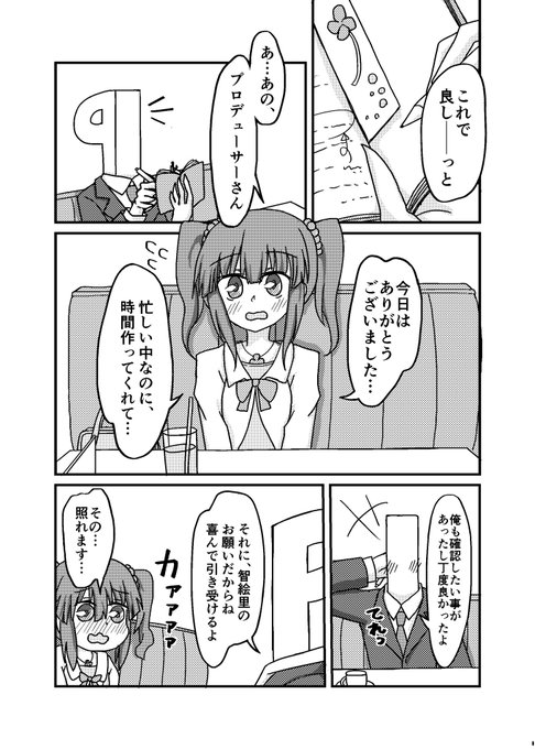 3月11日開催のシンデレラ☆ステージ6stepで新刊「ちぇりーベリー智絵里」を200円で頒布します。緒方智絵里とPがデレ照れする漫画です。気になった方は「望-32」の「シンキョウ:3rd」へ是非にー! #cin_stage
