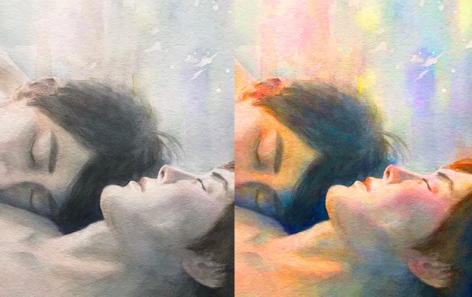 #絵を彩度100にすると超派手 このタグ面白い。 元の絵がアナログ水彩で彩度低めなので、変化が顕著でもはや別の絵www #ポルノグラファー