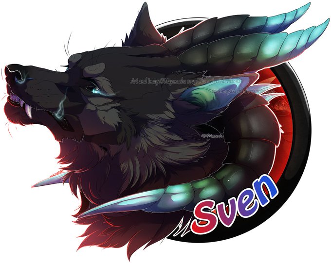 #mayasacha #art #drawing #Wolf #canines #digitalart #DigitalArtist #commissions #badge #headshot #dragon #Fluffy