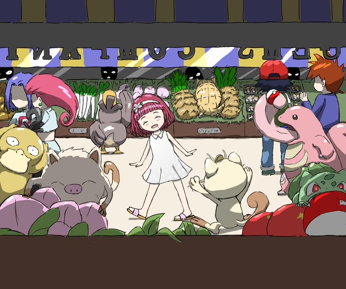 撫子さんがニャースの声真似が得意ということで、実はとある理由で幼少期、いっときの間ロケット団のニャースと一緒に過ごす時期があった・・・的な事を考えながら描いてみました。