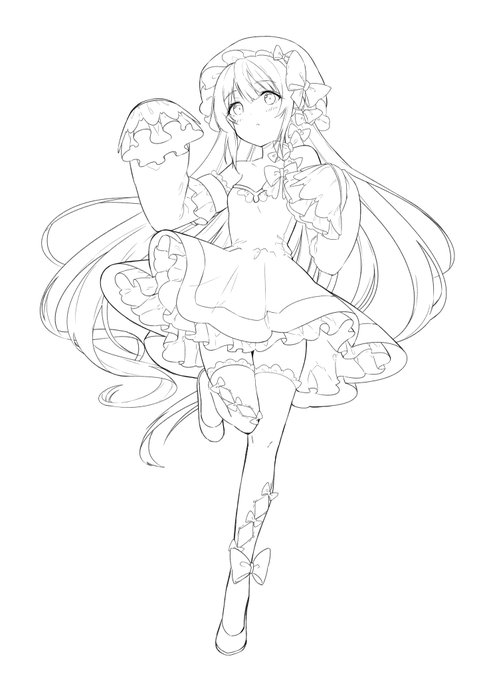 月雲さん( @tu_kumo_ )が線画放流していたので塗りますた。TLで見かけた塗っていいよ! って線画は練習に塗り塗りしてるよ……_(:3 」∠)_