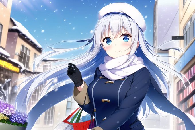 雪の晴れ間に、彼女とお買い物に来た…的な感じでしょうか👜途中でお友達?とも会ったようです✨(副産物)